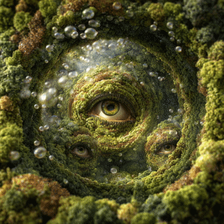 La cosmovisión atemporal retrofuturista de la im -posibilidad inmanente de ser en este tsunami informático un ente sostenible de verdad o autenticidad subjetiva legitimado genuinamente por el mainstream del Arte o tan siquiera por vos que estas observando esta mera intención poética atisbo de arte transformacional como espejismo reflejo de ese instante eterno de belleza que a pesar de todo subyace a la magia del caos distopico en que están abducidas actualmente nuestras misteriosas vidas...